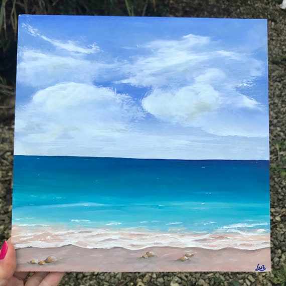 Acrylic On Wood Calm Beach Painting Original Seascape Artwork Wall Decor Home Decor Etsy